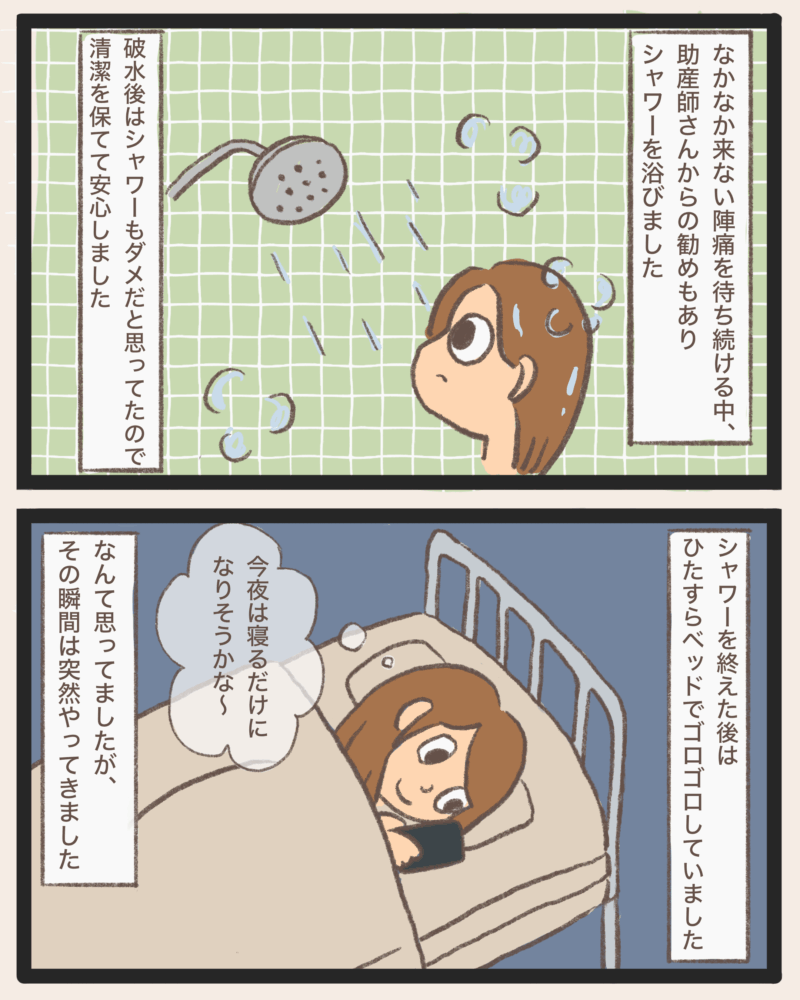 本格的な陣痛が来るまでは、余裕ぶっこいて病院内で適当に過ごしていましたが、今思えば少しでも寝て体力を温存すればよかったなと思います。