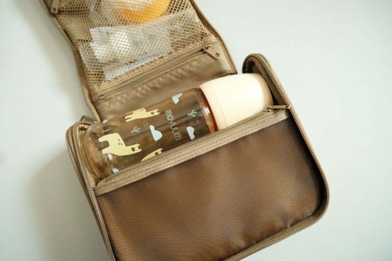 どんなママバッグにも馴染むデザインと、ミルクを持ち歩かなくなっても、旅行の際に再利用できる!と感じ、購入して哺乳瓶ポーチとして使用してみました。
